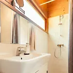 Die Unterkunft in Bistrica pri Trzicu mit Blick auf den Garten verfügt über einen Ankleidebereich und eine Sitzecke sowie einen Schreibtisch. Zur Ausstattung des Badezimmers gehören auch eine getrennte Toilette und eine Dusche. Ein Haartrockner und Badelaken sorgen ebenfalls für Ihren Komfort.